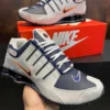O cabedal combina materiais resistentes com detalhes refinados, garantindo durabilidade e estilo. Já as colunas Shox na entressola proporcionam absorção de impacto e retorno de energia, tornando cada passo mais leve e confortável — no treino, no dia a dia ou no look streetwear.